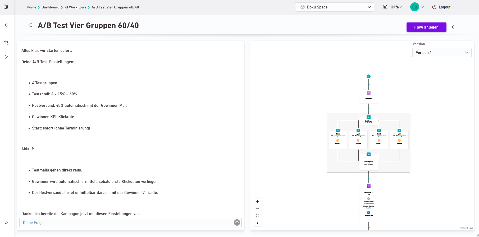 Sobald die KI alle Informationen hat, erstellt sie eine Workflow-Vorschau auf Basis Deiner Angaben.