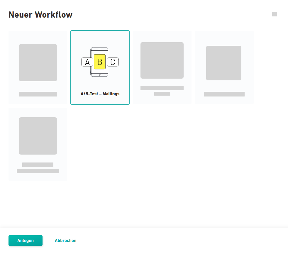 Wähle die Kachel "A/B-Test – Mailings" aus und klicke auf .