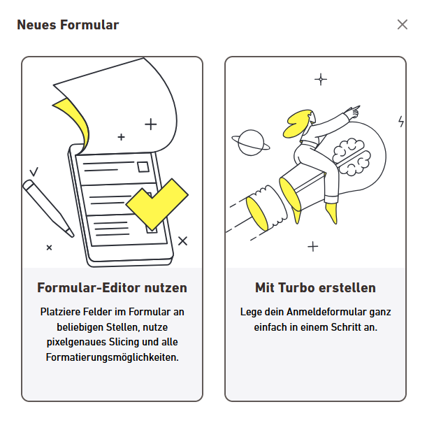 Nutze die "Schnellanmeldung", um ein einfaches, schnelles Anmeldeformular zu erstellen.