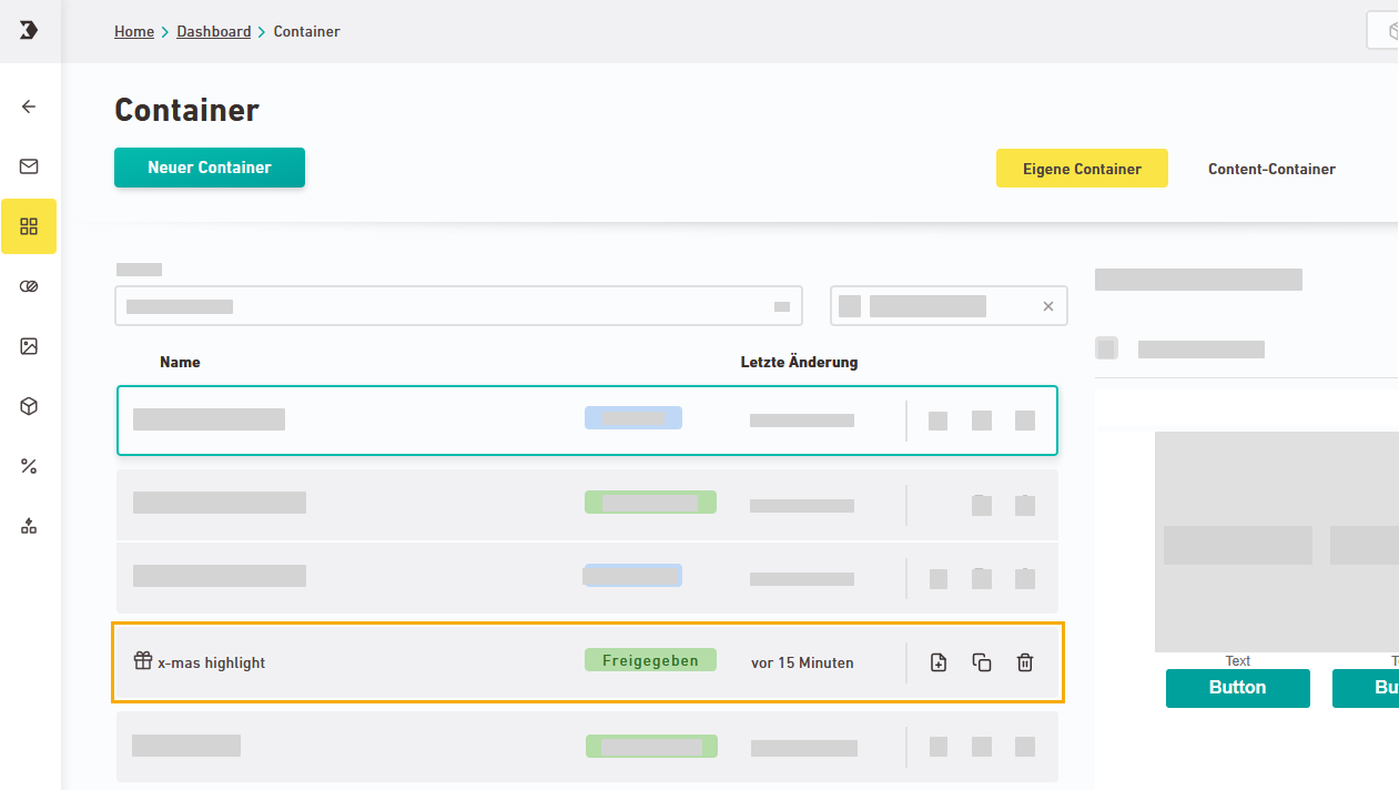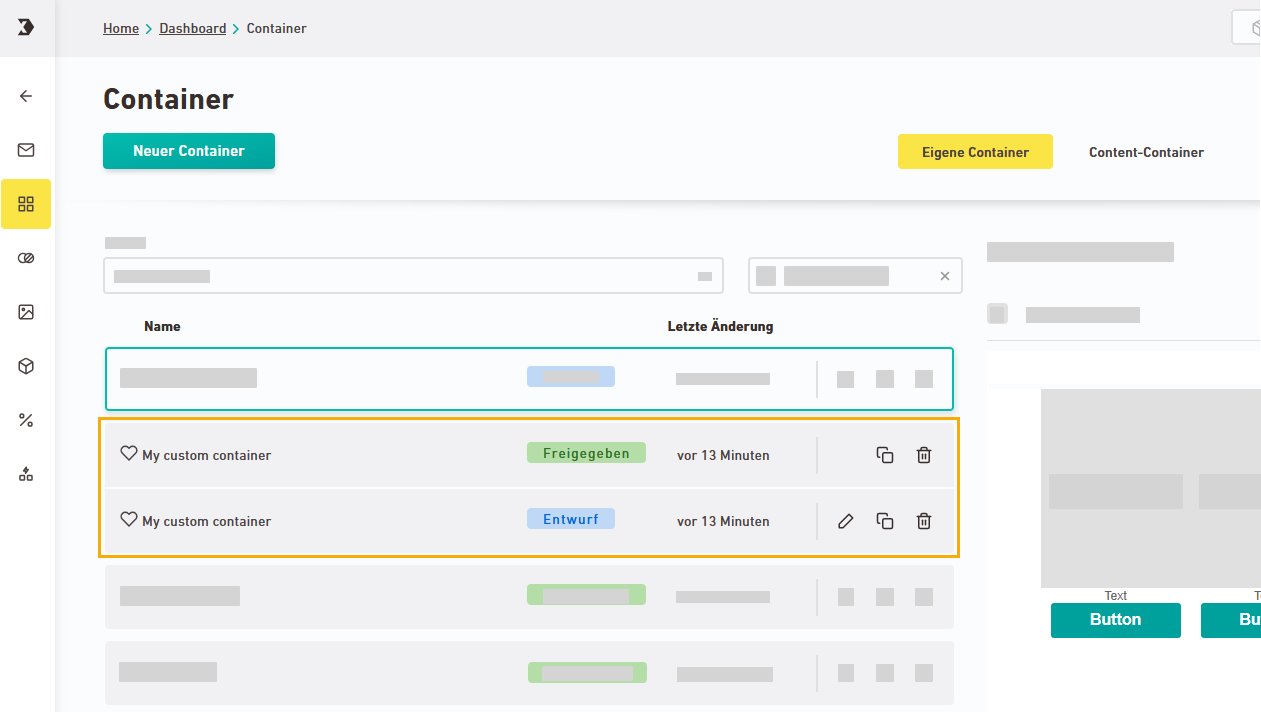 Klicke in der Container-Übersicht auf "Entwurf anlegen", um Deinen freigegebenen Container nachträglich zu bearbeiten. Deine Änderungen nimmst Du im Container-Entwurf vor. Der freigegebene Container bleibt zunächst unverändert.