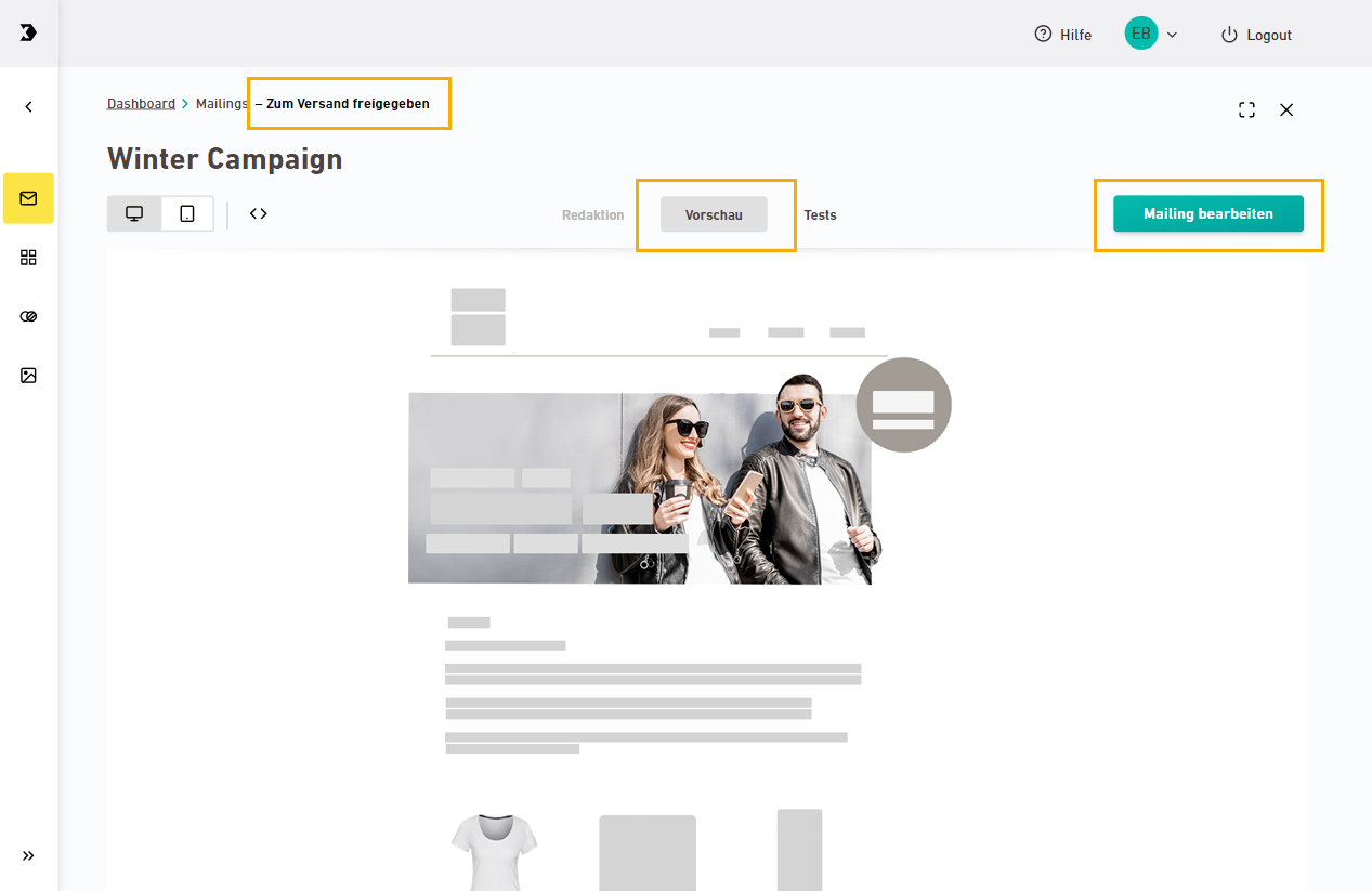 Du musst Dein Mailing freigeben, bevor Du es versenden kannst.