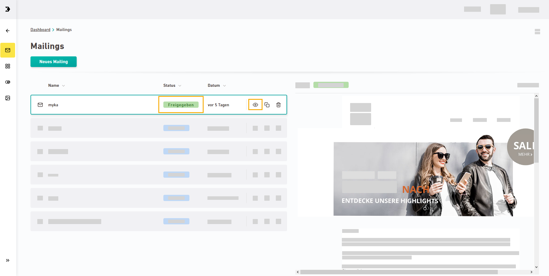 Mailings werden unterschiedlich dargestellt – je nachdem, ob es sich um einen Entwurf oder um ein freigegebenes Mailing handelt.