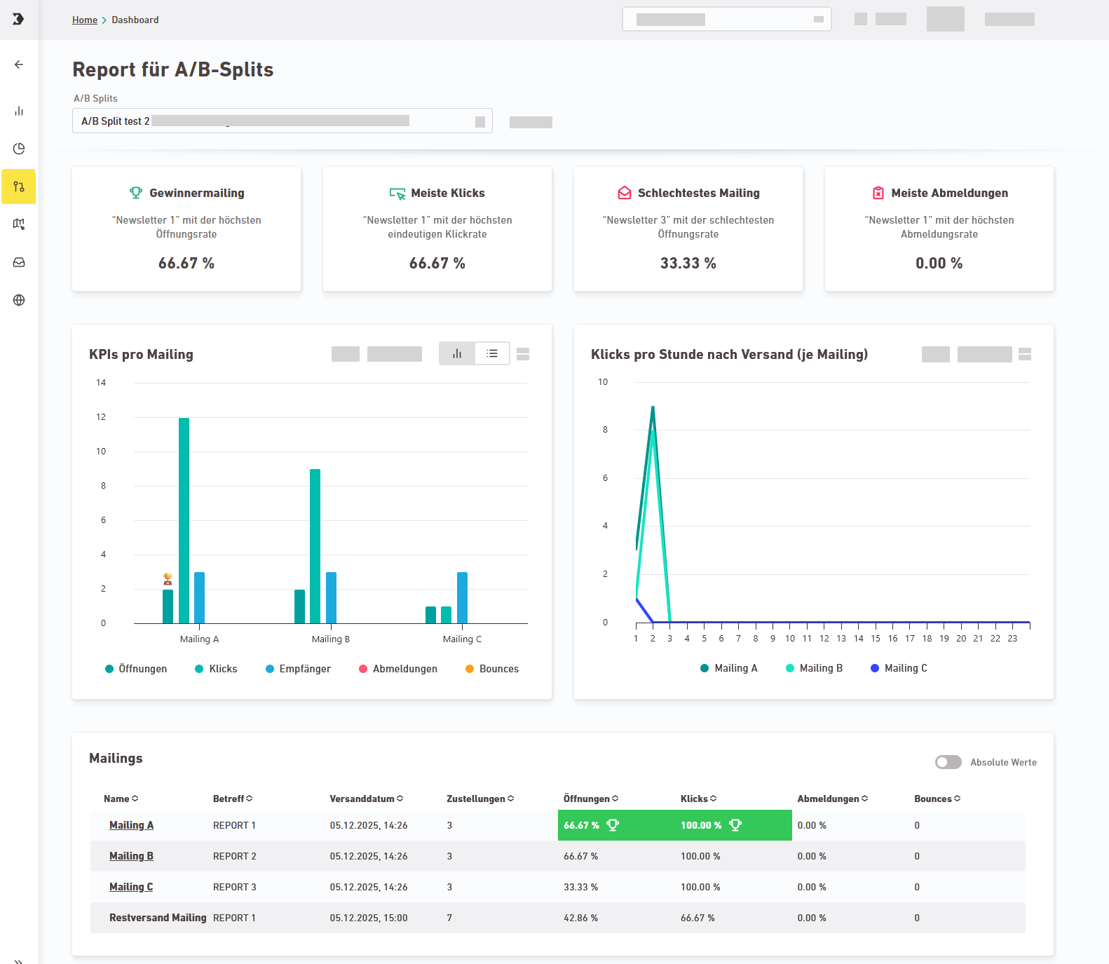 - Gewinnermailing (höchste Öffnungsrate)