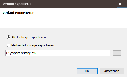Das Dialogfenster Verlauf exportieren wird angezeigt.