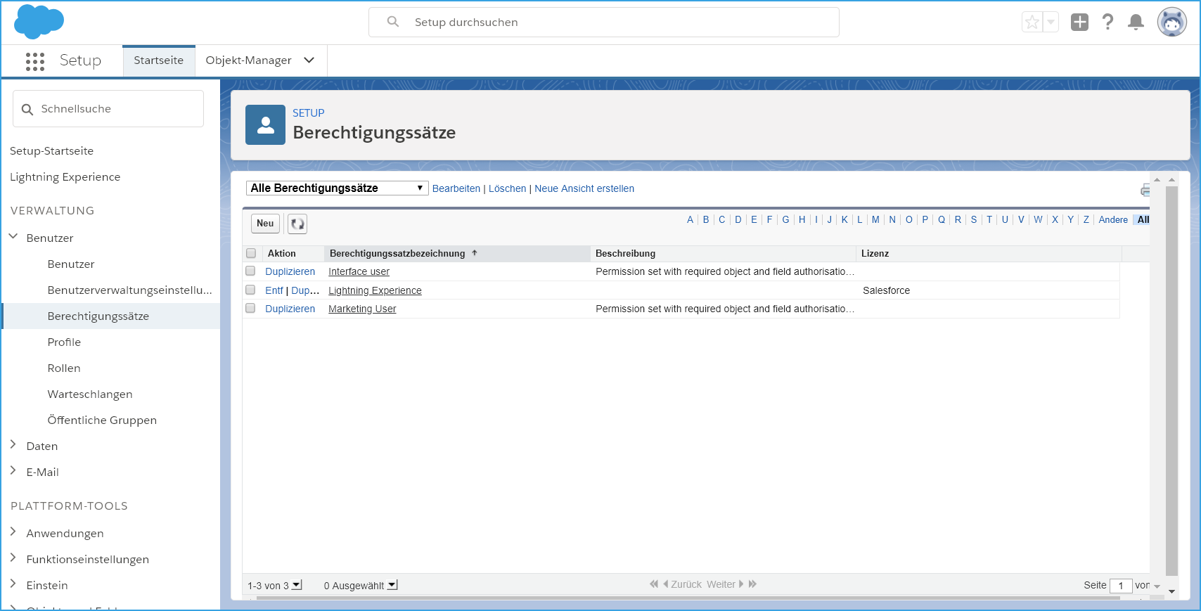 - Sie haben einem Nutzer ein Permission Set zugeordnet.