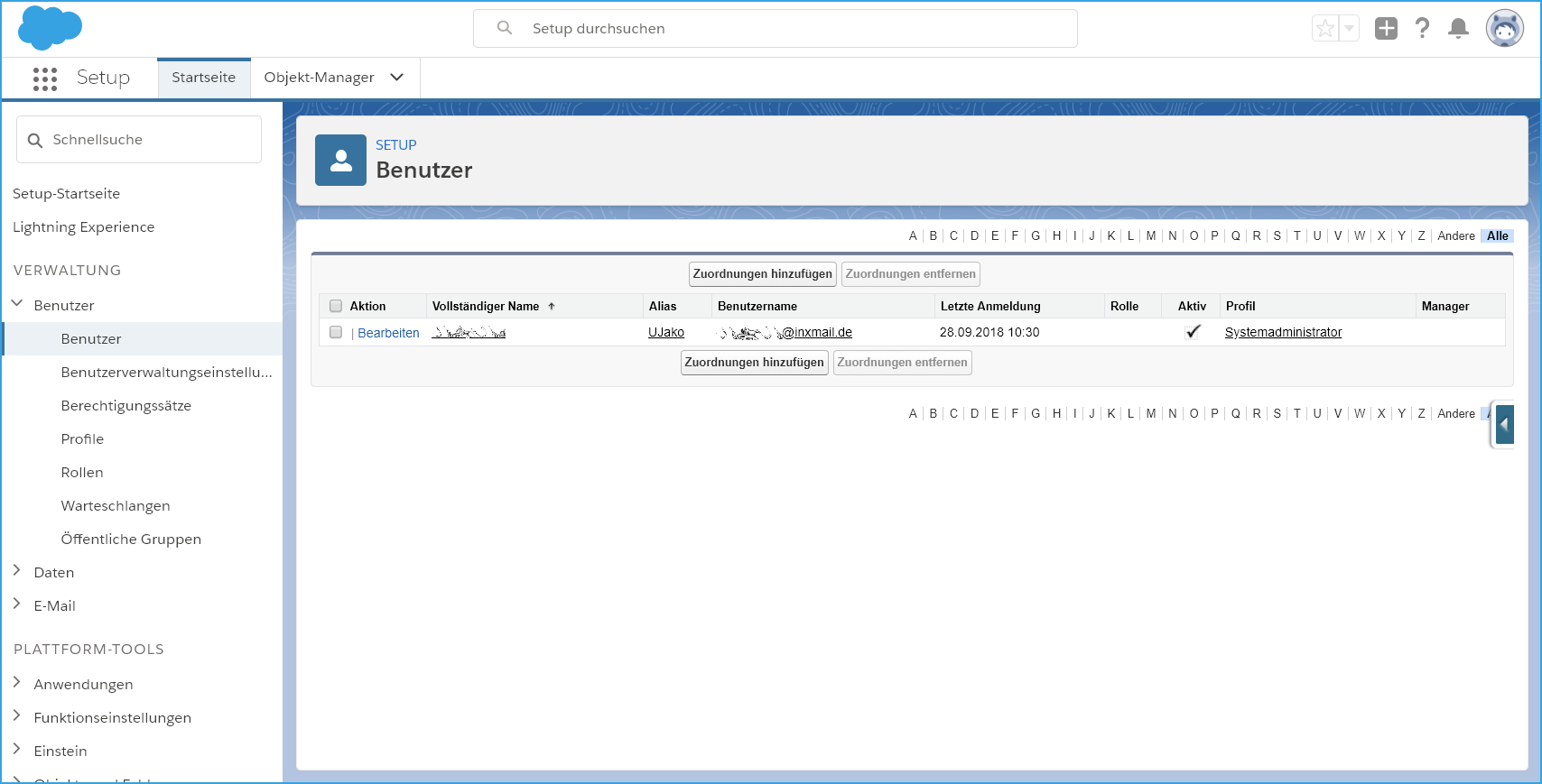 Alternative 2: Um ein Permission Set per Auswahl des Benutzers im Menüpunkt Benutzer zuzuweisen, gehen Sie wie folgt vor: