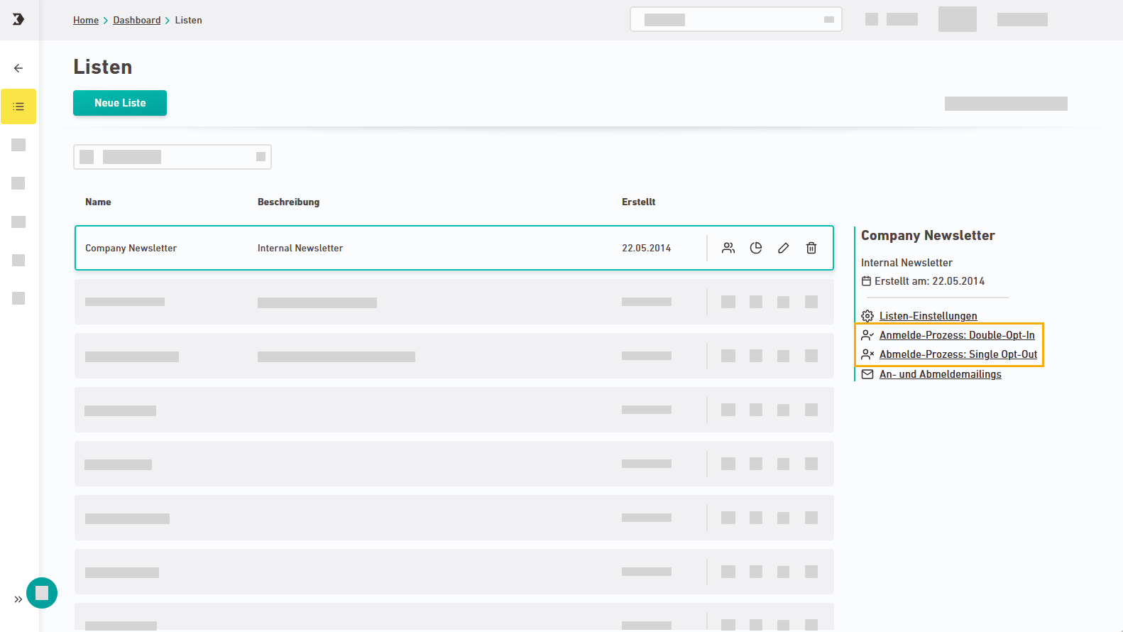 Select your list in the list overview and click on a process to change it or to (initially) set it up: