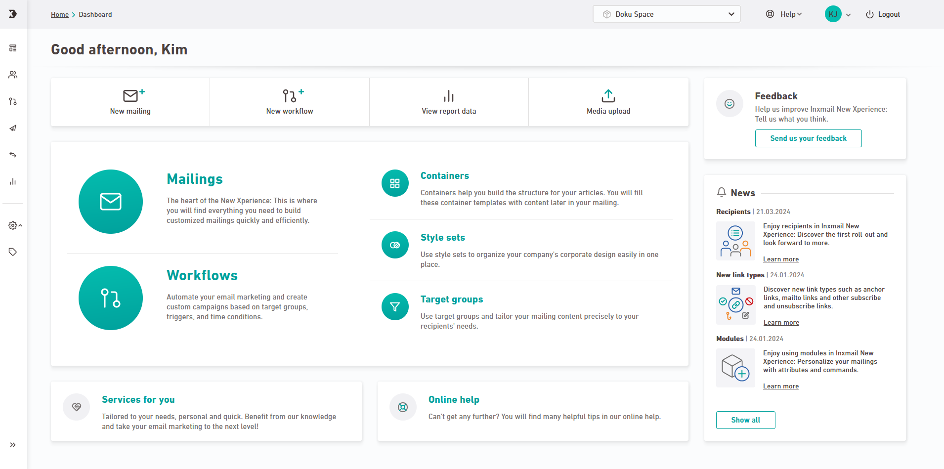 The dashboard is your entry point into Inxmail New Xperience.