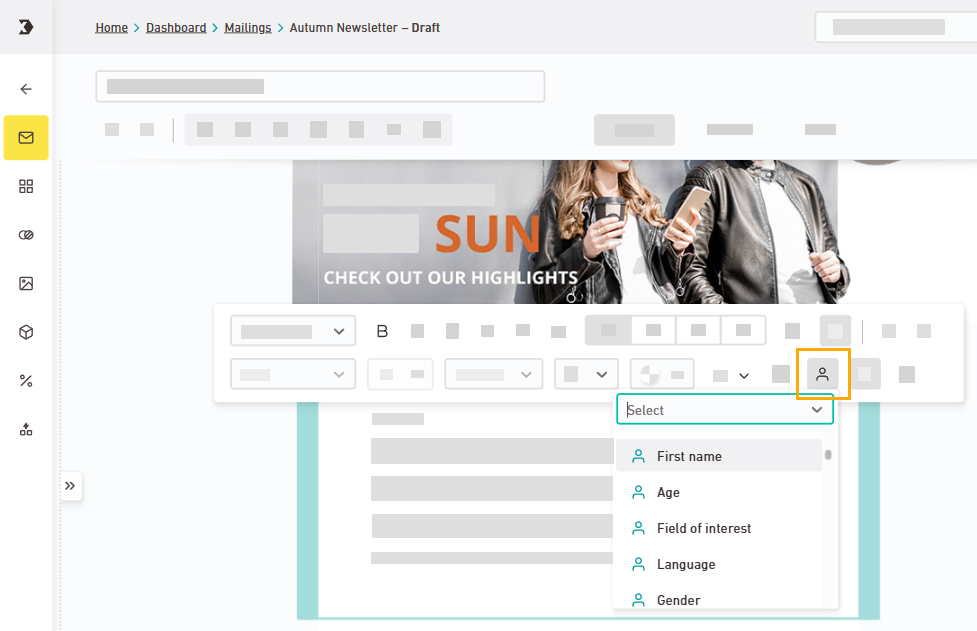 Synchronization required: Synchronize your mailing with XPRO to use your attributes in Newsletters & campaigns.