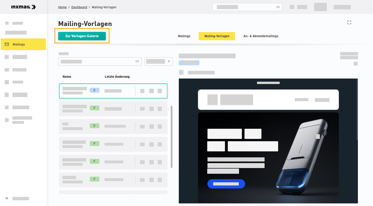 Inxmail saves your mailing templates in the "Mailing templates" tab. You can view or edit them there.