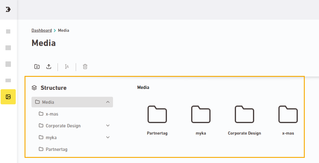 You can upload media and create or rename folders via the