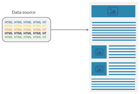 Note that the data source is only an HTML snippet. The <head> and <body> part of the HTML is already generated by the Inxmail template. This means: You must never use a <body> tag under any circumstances; a closing body tag would close the entire mailing body and cut off subsequent content.