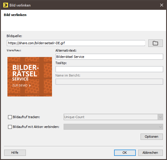 The Link image dialog box will be displayed.